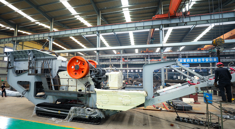 下面這個就是我們公司生產的履帶式移動顎破生產車間,下面是履帶式破碎站的生產車間,這是一臺履帶式顎式破碎站,他搭載的是C系鄂式破碎機,這是一款專門用在履帶車上的破碎設備,這款破碎站一個小時可以處理一兩百噸的原料,像建筑垃圾,礦石,河卵石,青石,頁巖,礦渣都可以采用這個破碎站進行破碎,履帶式的破碎站有一個很大的好處,就是它采用的是柴油機進行提供動力,所以他不需要外部電力,而且他還可以自由的移動,在短距離移動過程中,它動力強勁,可以從一個現場直接開到另外一個現場,這樣的話就省掉了原料運輸的問題,原料不需要運輸到破碎生產線,而是把破碎生產線直接開到原料的所在地,所以這樣就省掉了很多的麻煩,而且破碎生產線也不是固定的,所以他可以隨意的移動,這樣的話也不用再建設破碎生產線的過程中浪費很多時間。